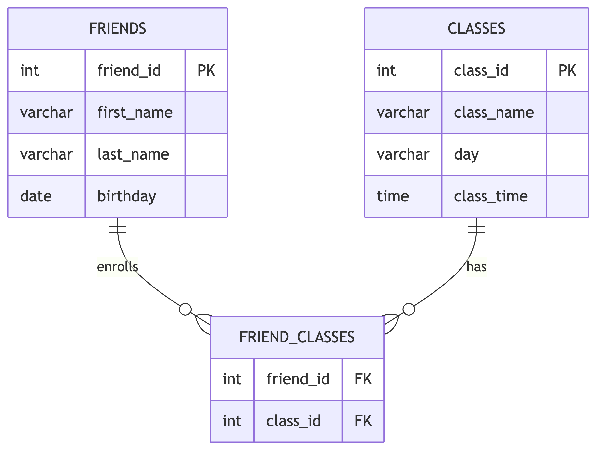 Example: Creating a Friends Table