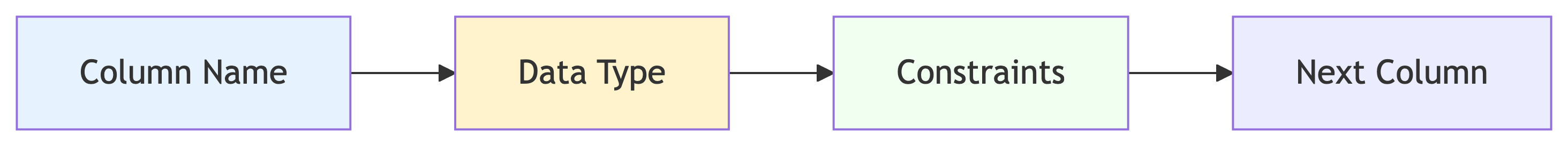Each column definition has: