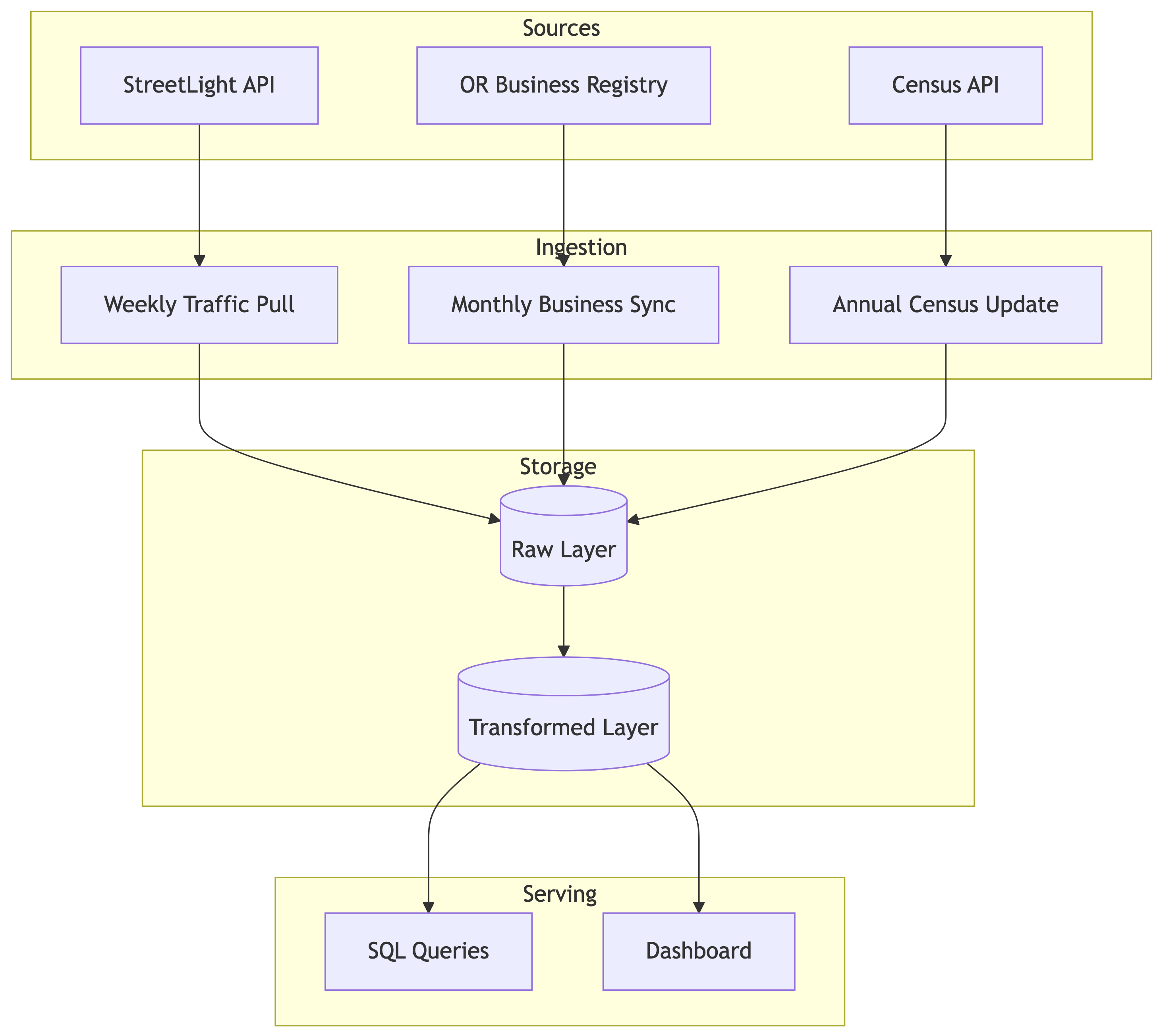 GROUP BY town_id, business_type;The Story This Pipeline Tells