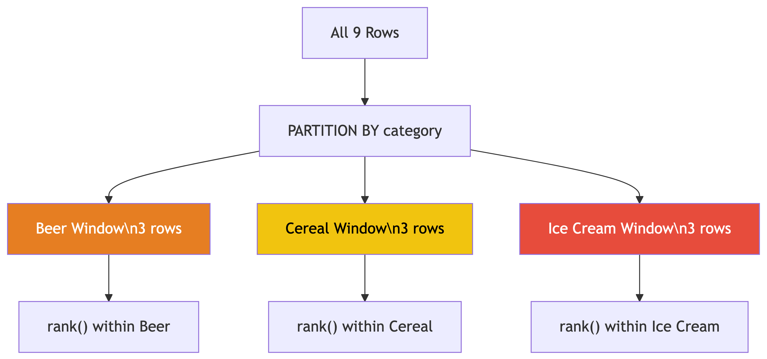 Grouped windows | “Rank within each group” |